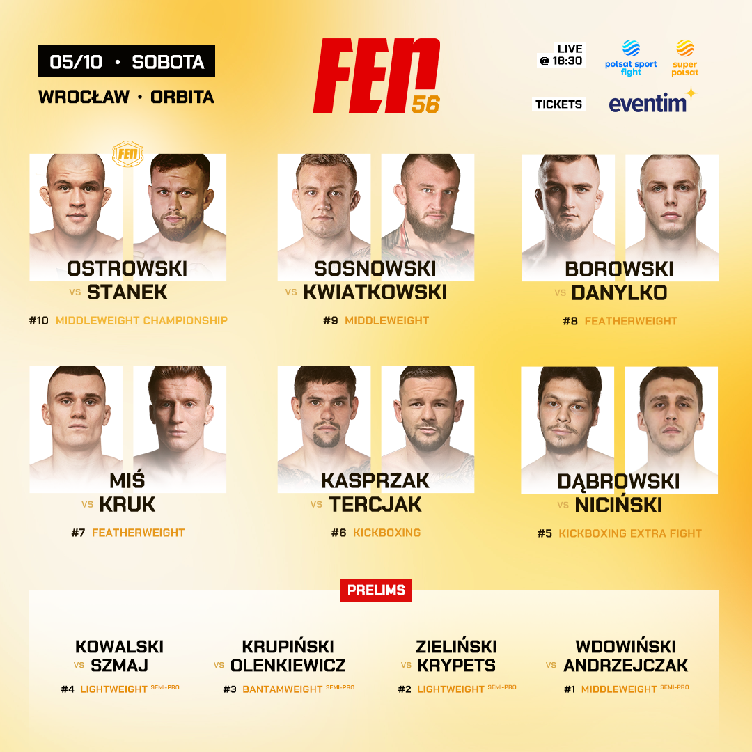 Przedstawiamy kartę walk gali FEN 56, która 5 października odbędzie się we Wrocławiu.