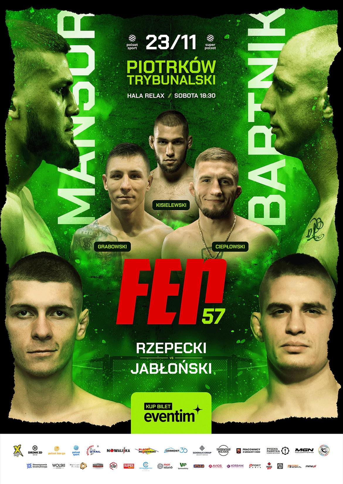 Przedstawiamy oficjalny plakat gali FEN 57, która 23 listopada odbędzie się w Piotrkowie Trybunalskim.