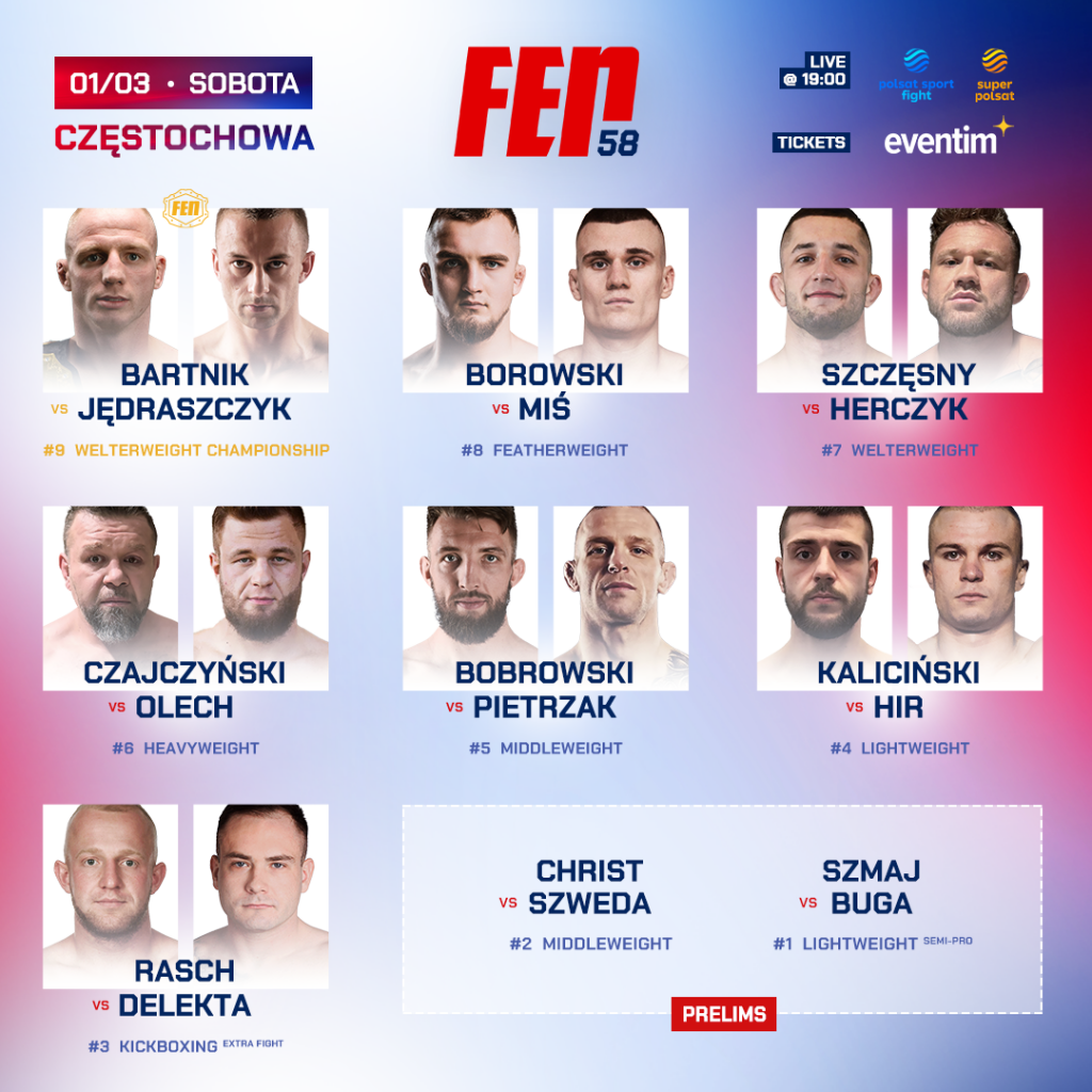 Przedstawiamy wynik ważenia przed galą FEN 58, która 1 marca odbędzie się w Częstochowie.