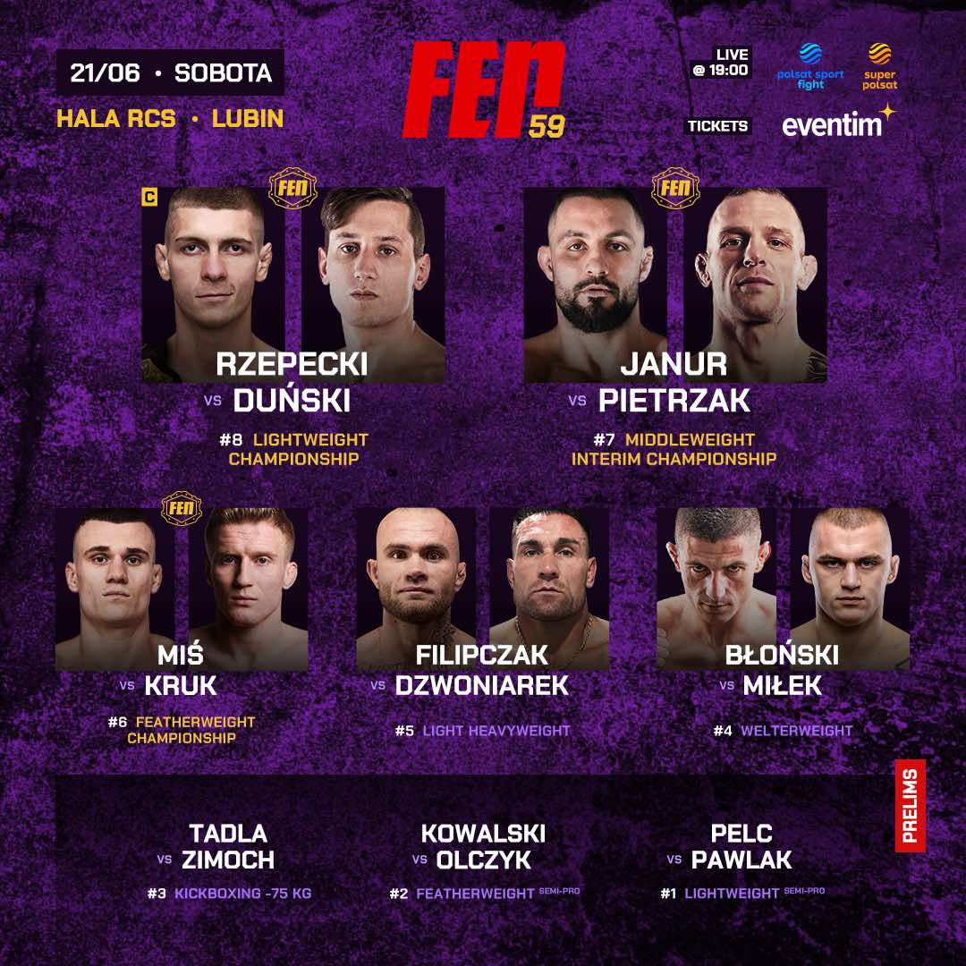 Przedstawiamy wyniki ważenia, przed galą FEN 59, która 21 czerwca odbędzie się w Lubinie.